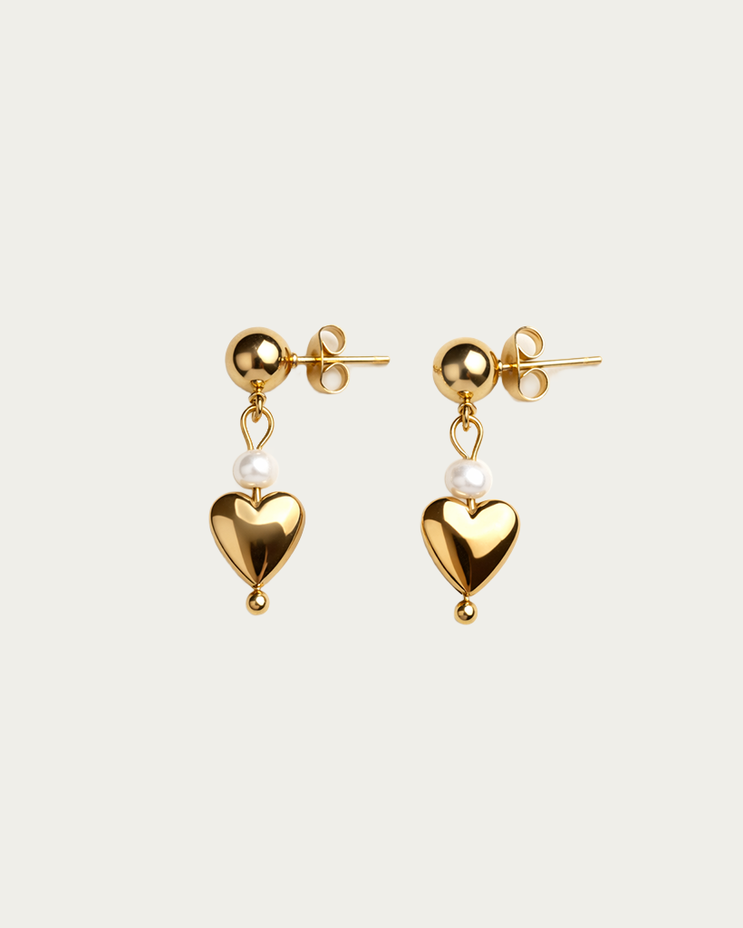 Naturalna perła słodkowodna zachwyca miękkim, perłowym blaskiem i unikatową strukturą, podkreślając szlachetność kompozycji. Hematyt w formie serca nadaje kolczykom głębi oraz symbolicznego wyrazu, a całość została wykończona trwałym złoceniem 18-karatowym złotem, które dodaje ciepłego, luksusowego tonu i zapewnia odporność na codzienne użytkowanie.