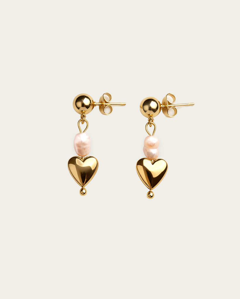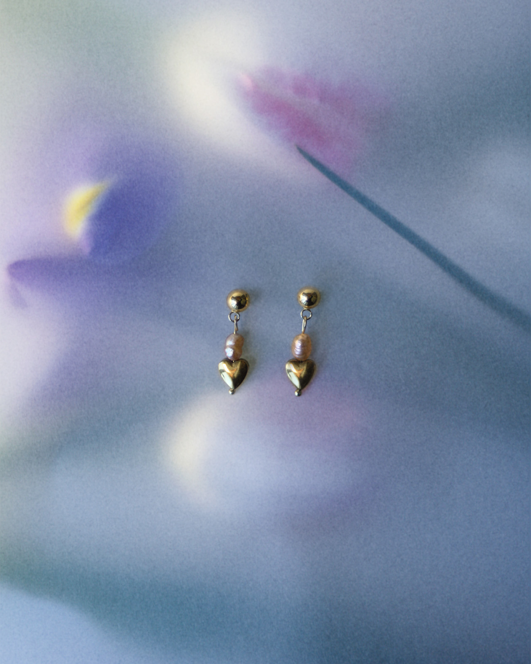 Naturalna perła łososiowa zachwyca miękkim, różowawym blaskiem i unikatową strukturą, podkreślając szlachetność kompozycji. Każda perła ma wyjątkowy kształt, czyniąc każdą parę kolczyków unikalnym egzemplarzem. Hematyt w formie serca nadaje kolczykom głębi oraz symbolicznego wyrazu, a całość została wykończona trwałym złoceniem 18-karatowym złotem, które dodaje ciepłego, luksusowego tonu i zapewnia odporność na codzienne użytkowanie.