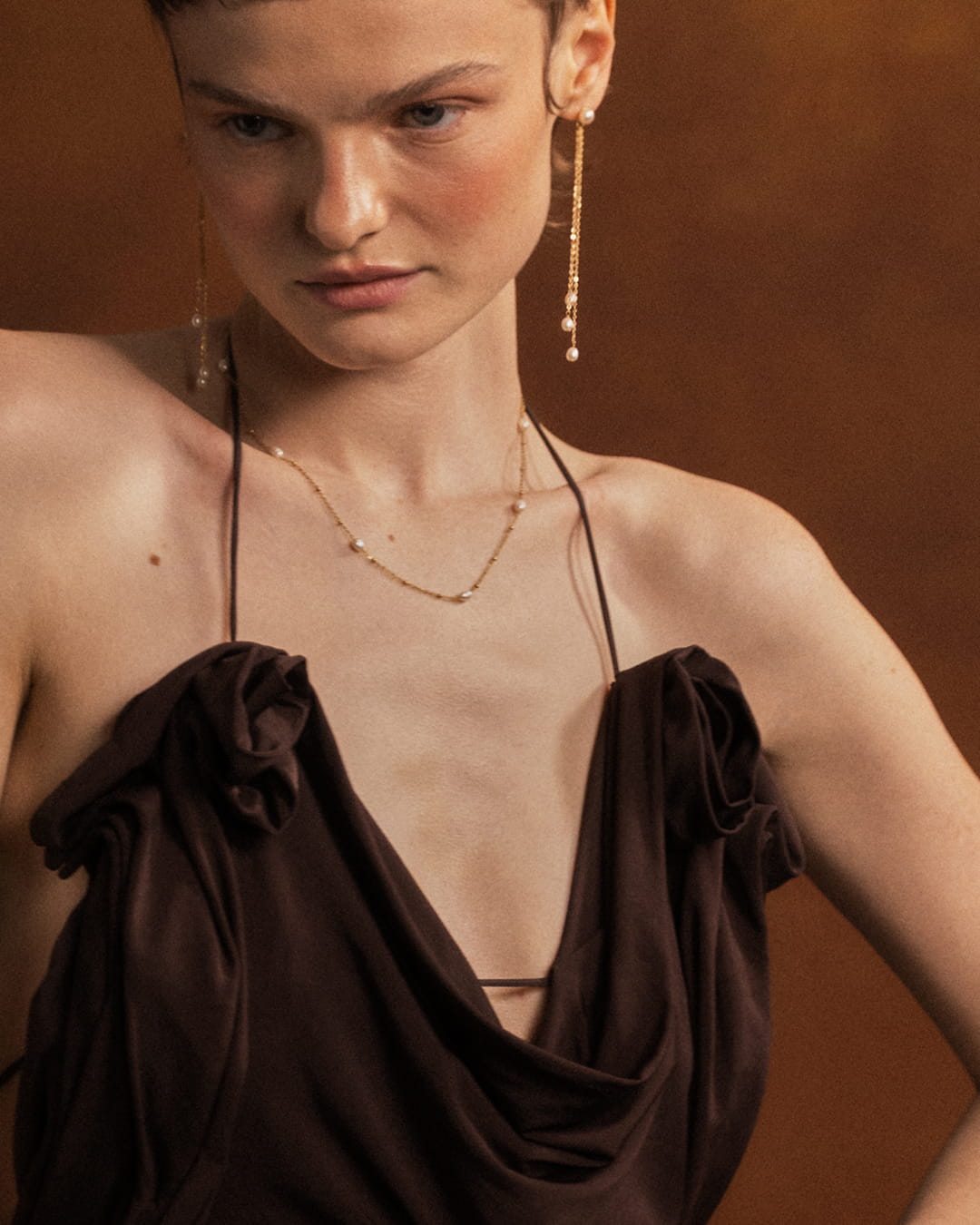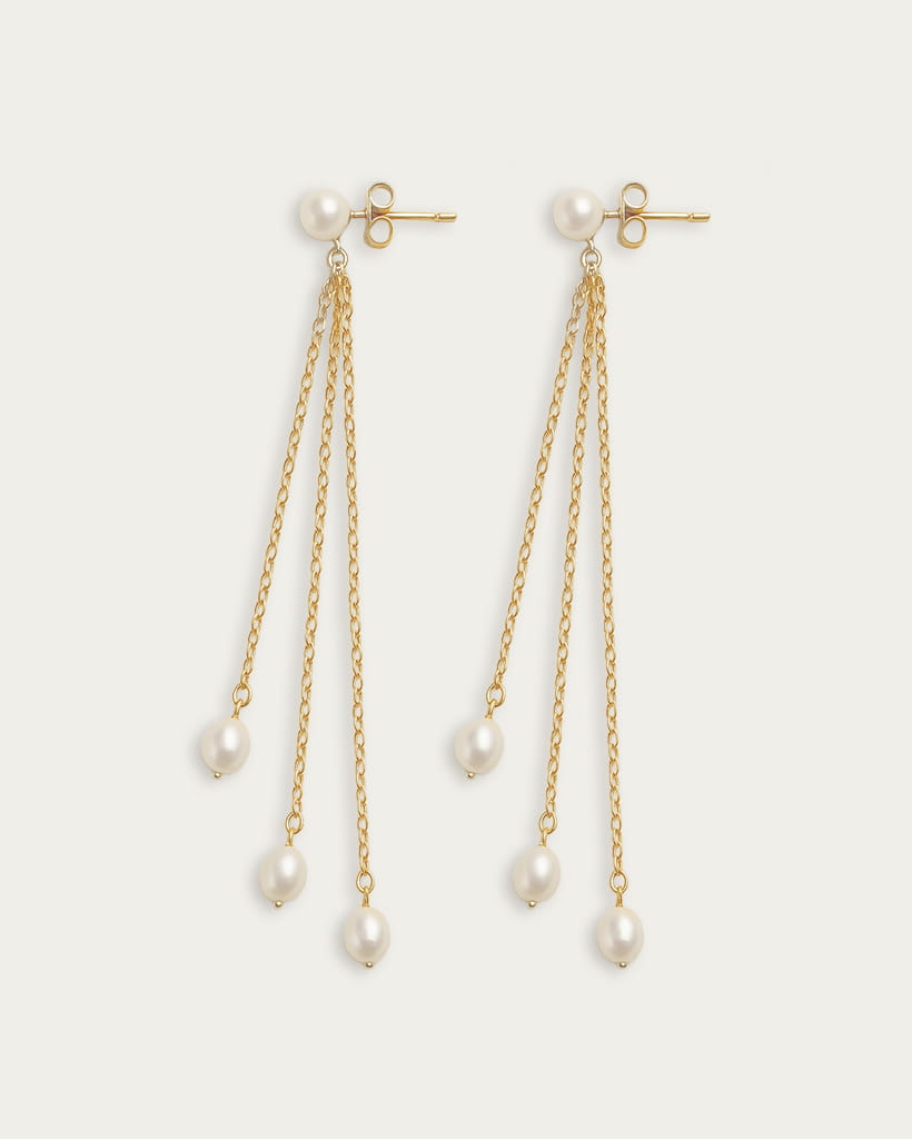 Na zakończeniach łańcuszków umieszczono naturalne perły słodkowodne klasy AA+, starannie dobrane pod względem połysku i kształtu. Perły w rozmiarze ok. 5-6 mm prezentują się niezwykle elegancko – ich powierzchnia charakteryzuje się wysoką iryzacją, a delikatnie owalna forma podkreśla ich organiczne pochodzenie. Każda z pereł jest unikatowa, co sprawia, że kolczyki nabierają indywidualnego charakteru.