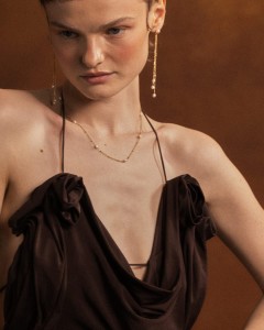 Konstrukcję oparto na sztyfcie jubilerskim zakończonym kulką o średnicy 5 mm, z którego wypływają trzy delikatne łańcuszki typu ankier o różnej długości. Taka budowa zapewnia subtelny efekt ruchu i wydłużenia sylwetki szyi.