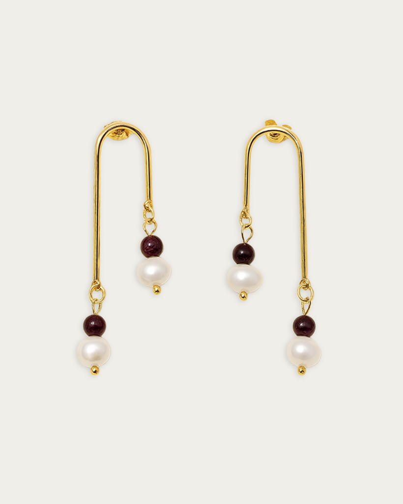 Dodatkowym akcentem są granaty naturalne, gładko szlifowane o średnicy 4 mm, których głęboka, rubinowa barwa nadaje kompozycji wyrafinowanego charakteru.
