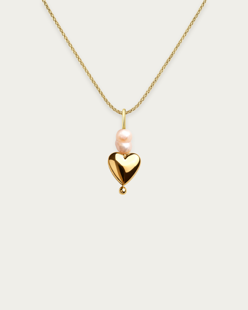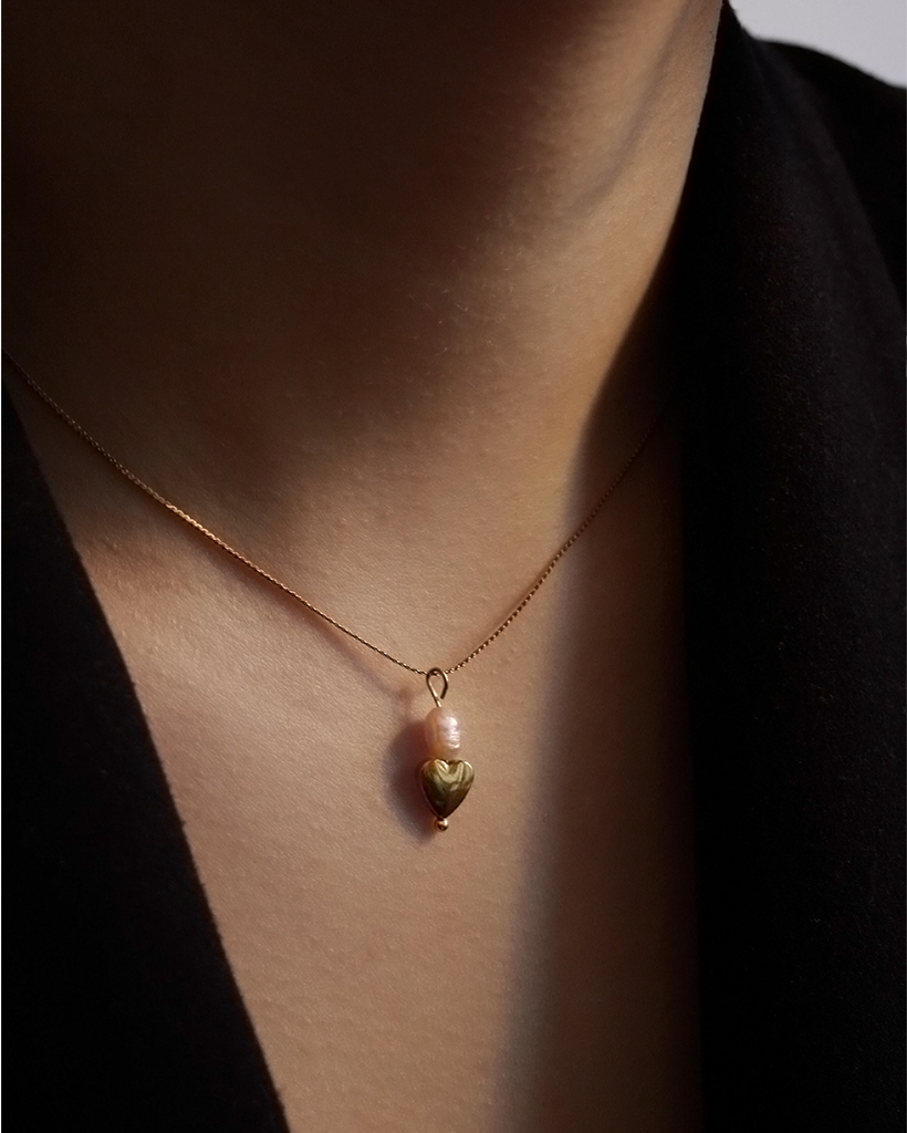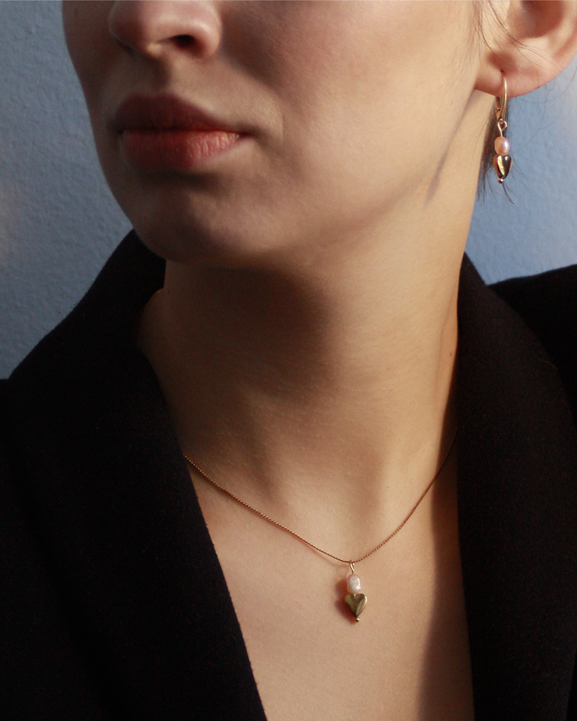 Delikatna, naturalna perła połączona została z hematyt w formie serca, a całość została wykończona trwałym złoceniem 18-karatowym złotem z powłoką PVD, które dodaje ciepłego, luksusowego tonu i zapewnia odporność na codzienne użytkowanie.