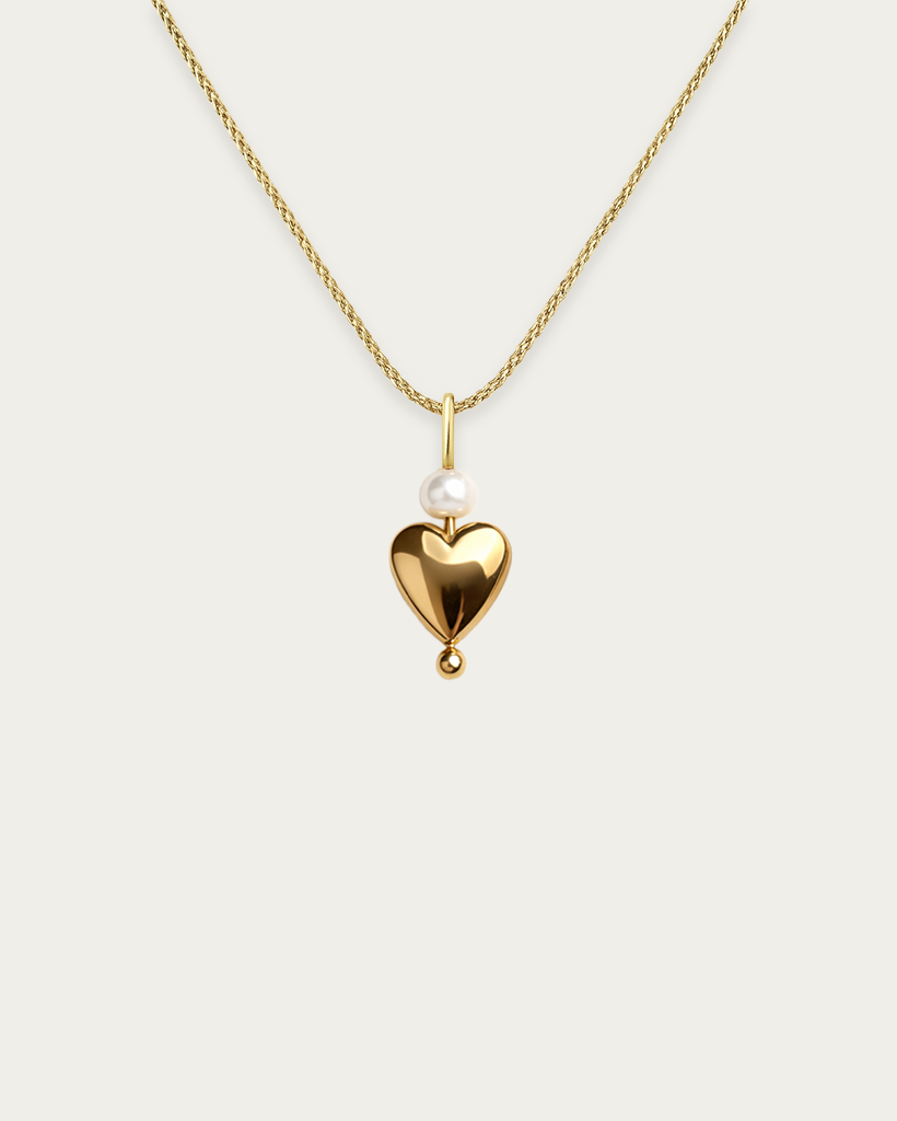 Delikatna, naturalna perła połączona została z hematyt w formie serca, a całość została wykończona trwałym złoceniem 18-karatowym złotem z powłoką PVD, które dodaje ciepłego, luksusowego tonu i zapewnia odporność na codzienne użytkowanie.
